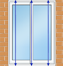 Firstly, measure the width, brickwork to brickwork, in three places (top, middle and bottom) and deduct approximately 10mm from your smallest measurement.