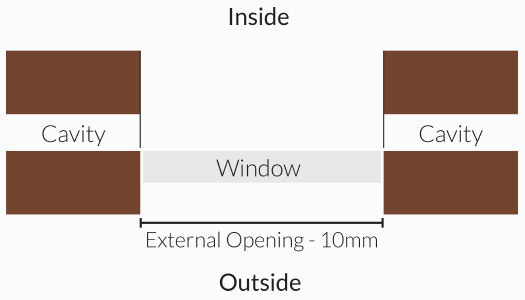 Measure between the external brickwork opening and deduct 10mm from both the width and the height.